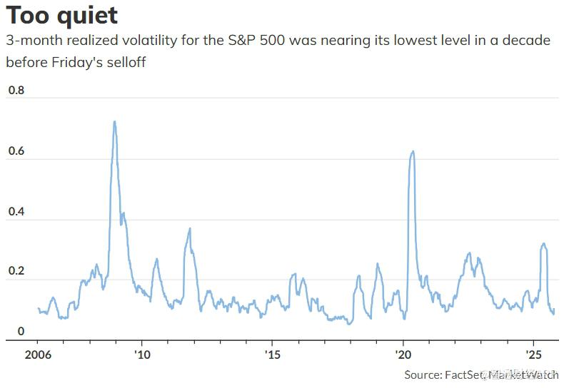 9月底开始,市场不安的信号逐渐显现。9月29日至10月3日期间,标普500与VIX连续五个交易日同步上升,这种情况自1996年以来首次出现,暗示市场的平静期或已结束。分析人士指出,市场的情绪就像堆满干柴的仓库,只需一点火花即可引发波动,而上周五的抛售或正是这一火花。