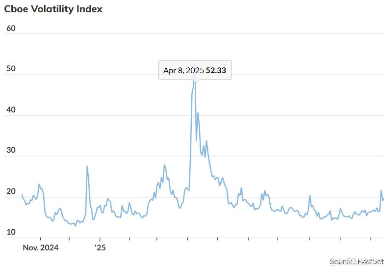 自20世纪90年代初VIX推出以来,其长期均值略低于20点,因此这一水平常被视为市场从平静转向紧张的临界点。VIX反映的是未来一个月与标普500指数挂钩的期权隐含波动率,通常被视为市场恐慌或风险预期的指标。
